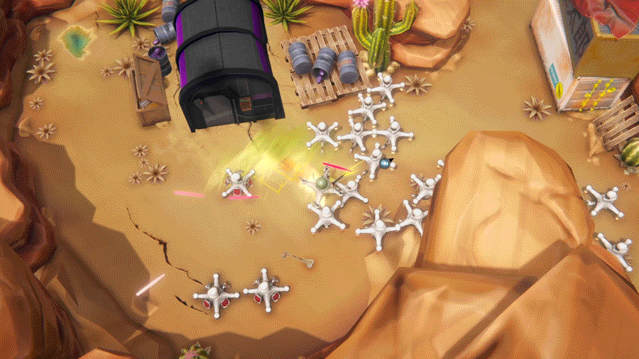 Do you have what it takes to take out the enemy drones? Equipping yourself with the right weapons and learning to fly your drone is crucial to your survival. Tinkering with your drone customisations is also fundamental to your success. How else will you compete with others when it comes time for the Battle Drones Championships?\